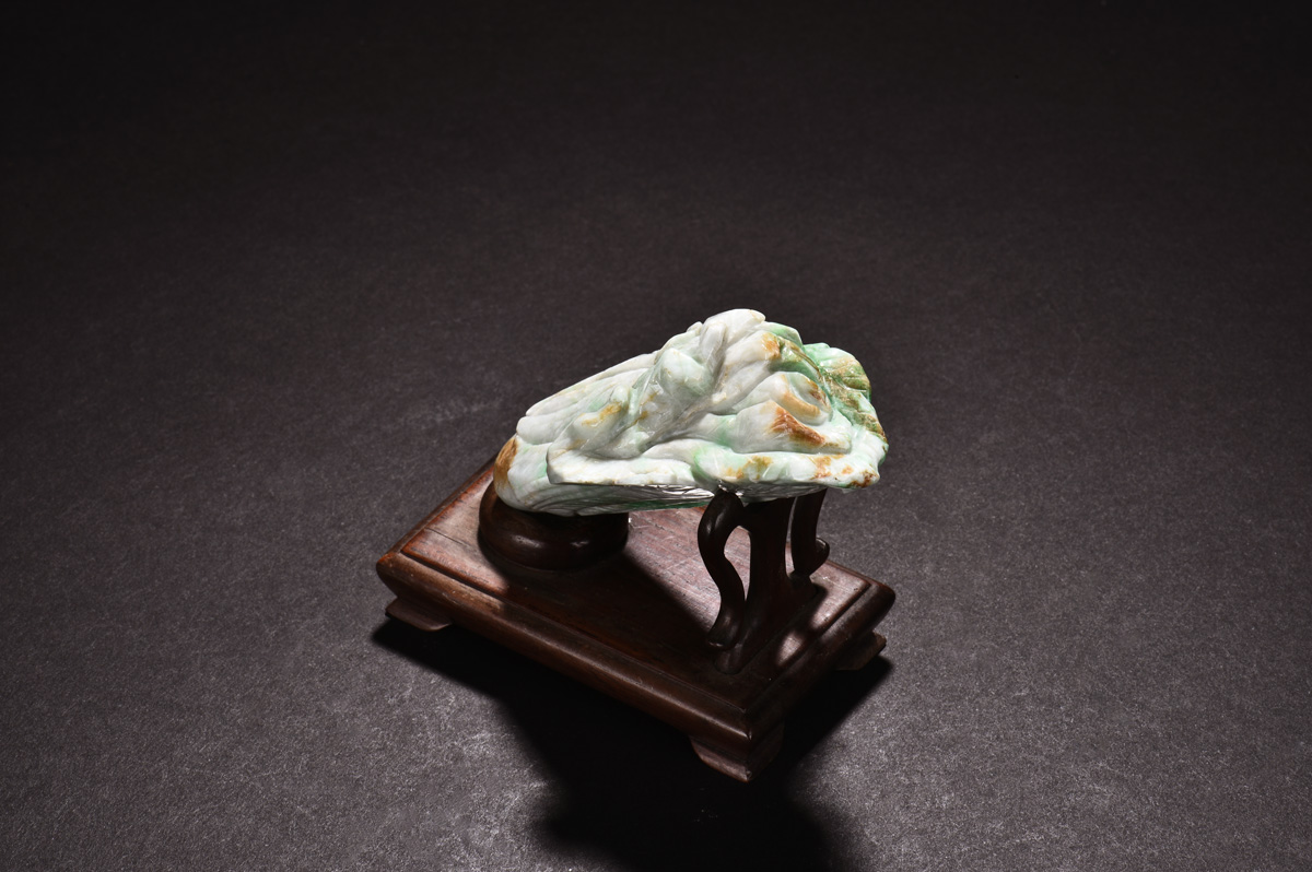PAIR OF JADEITE CHINESE CABBAGE CARVING