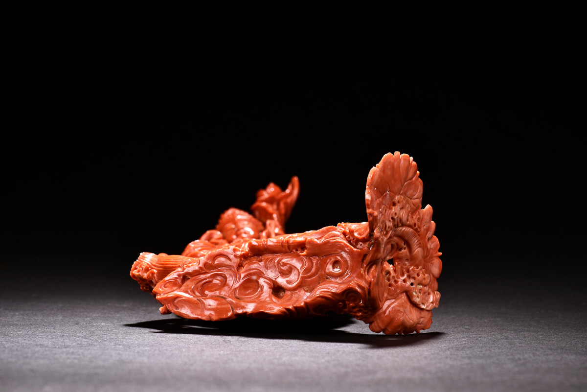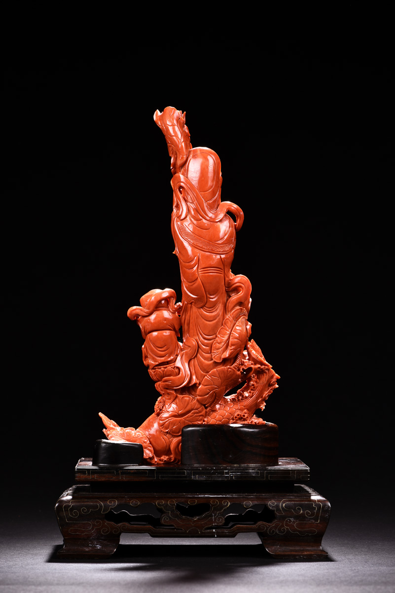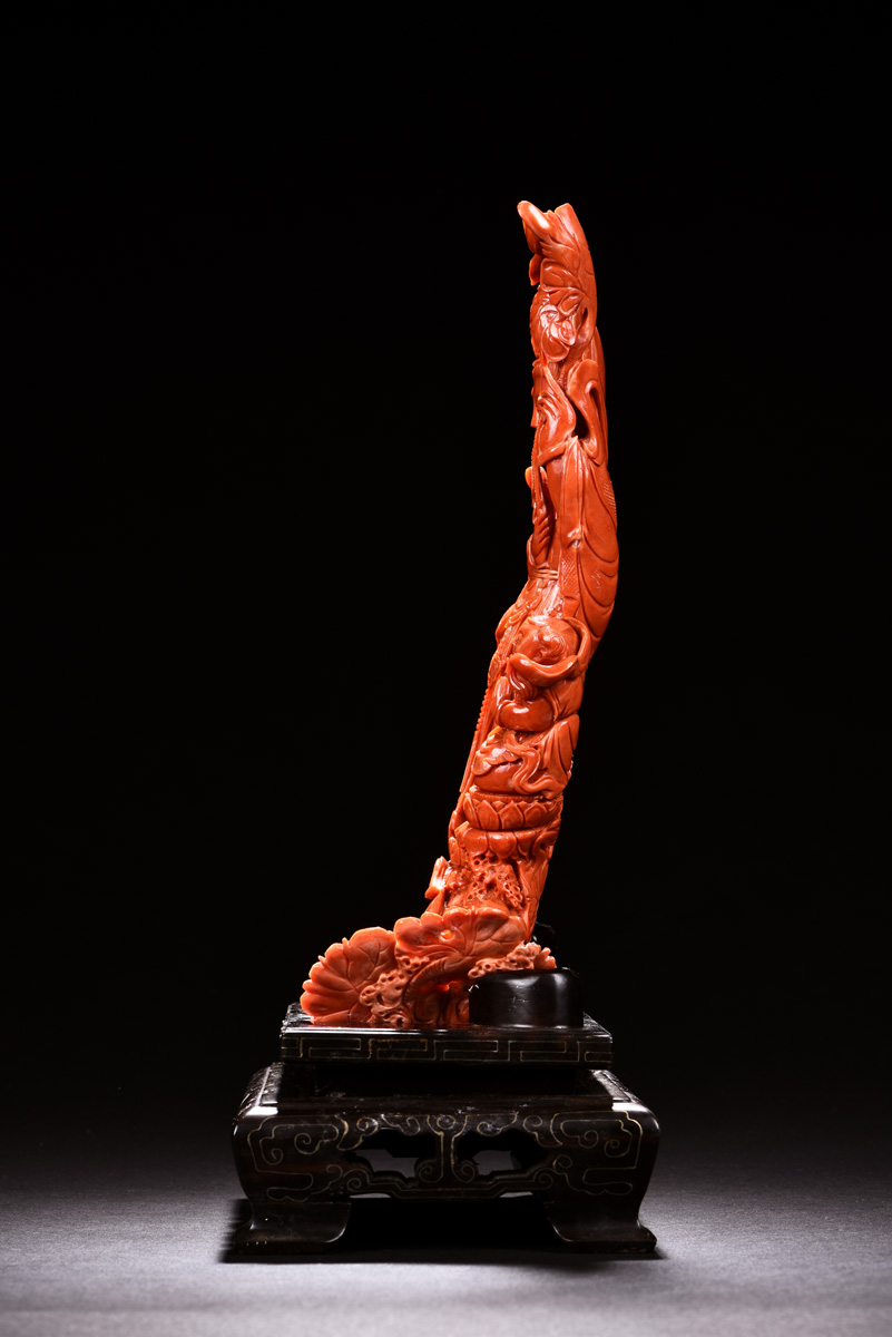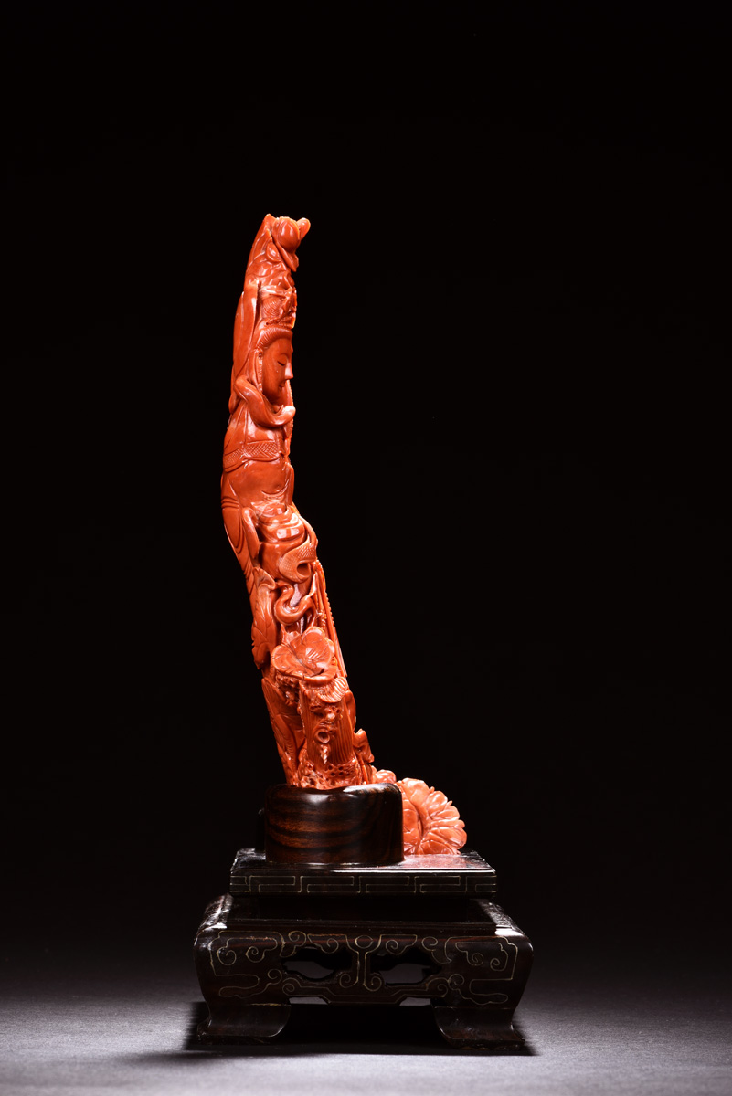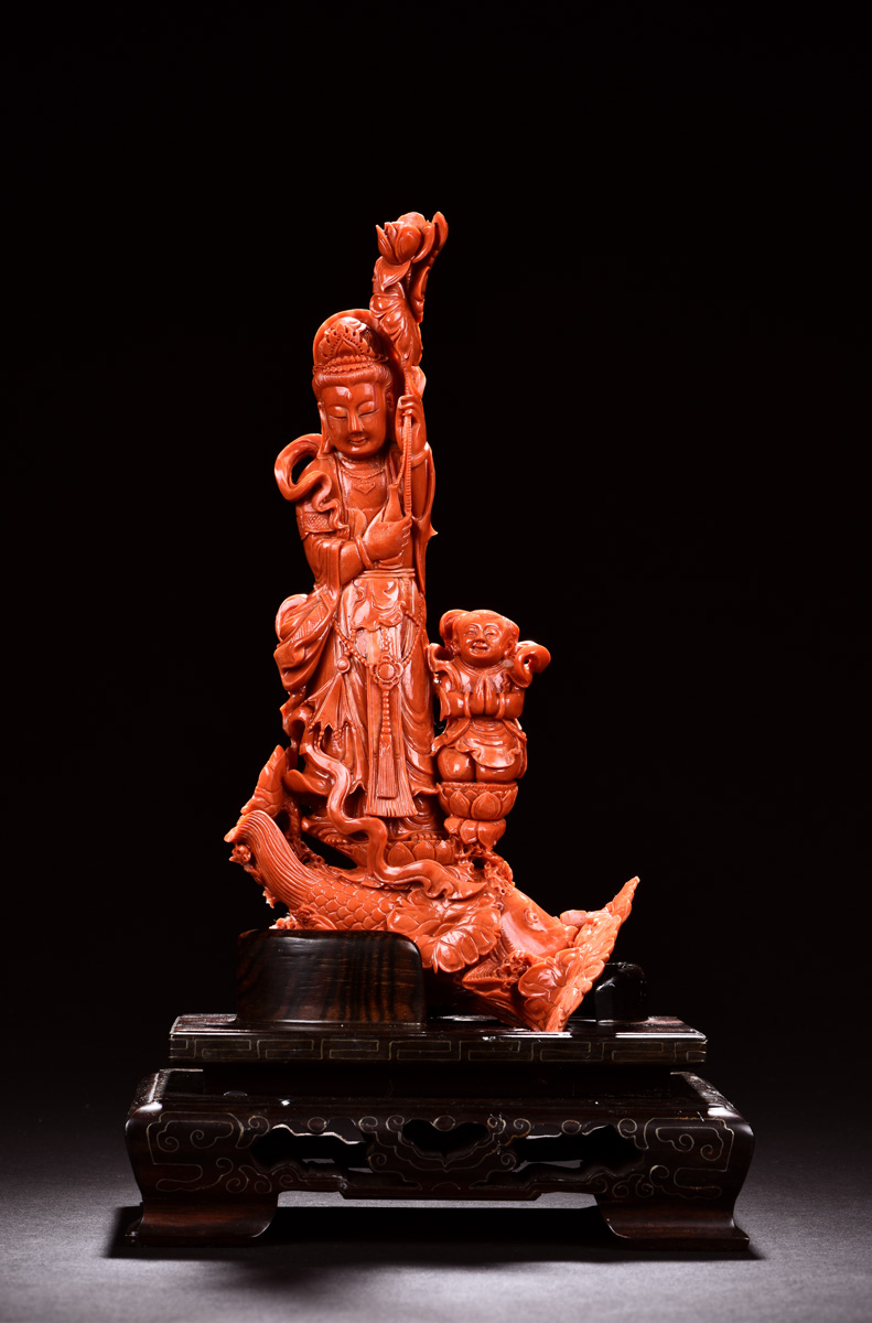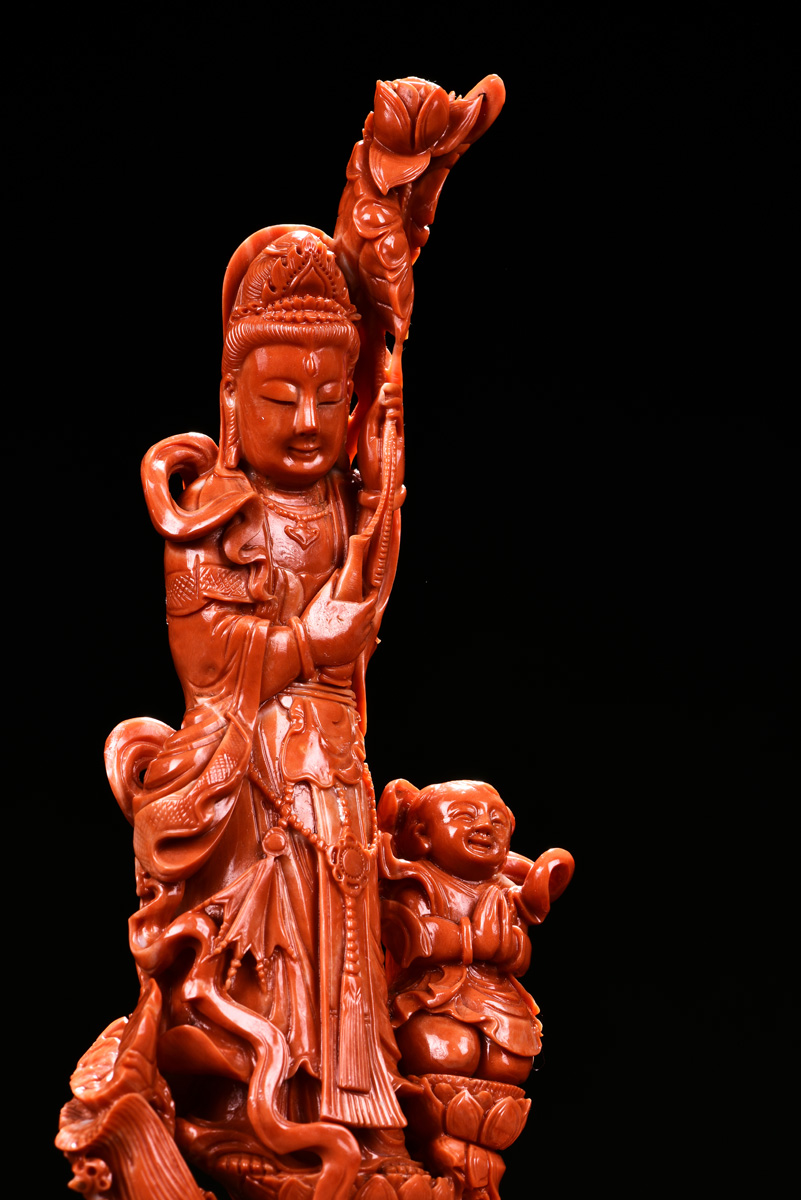 THE ORANGE RED CORAL FAIRCHILD WORSHIP GUANYIN CARVING