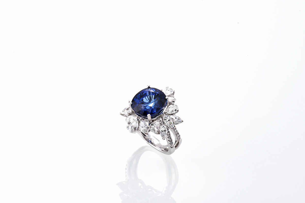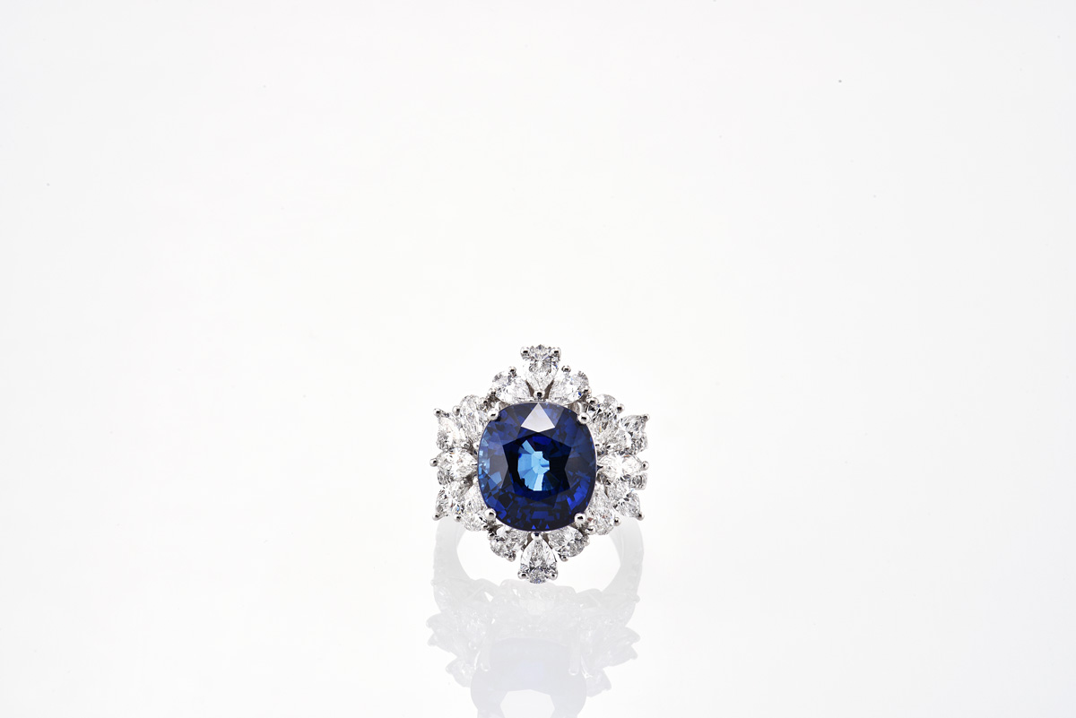 12.12 CARATS BLUE SAPPHIRE AND DIAMOND RING