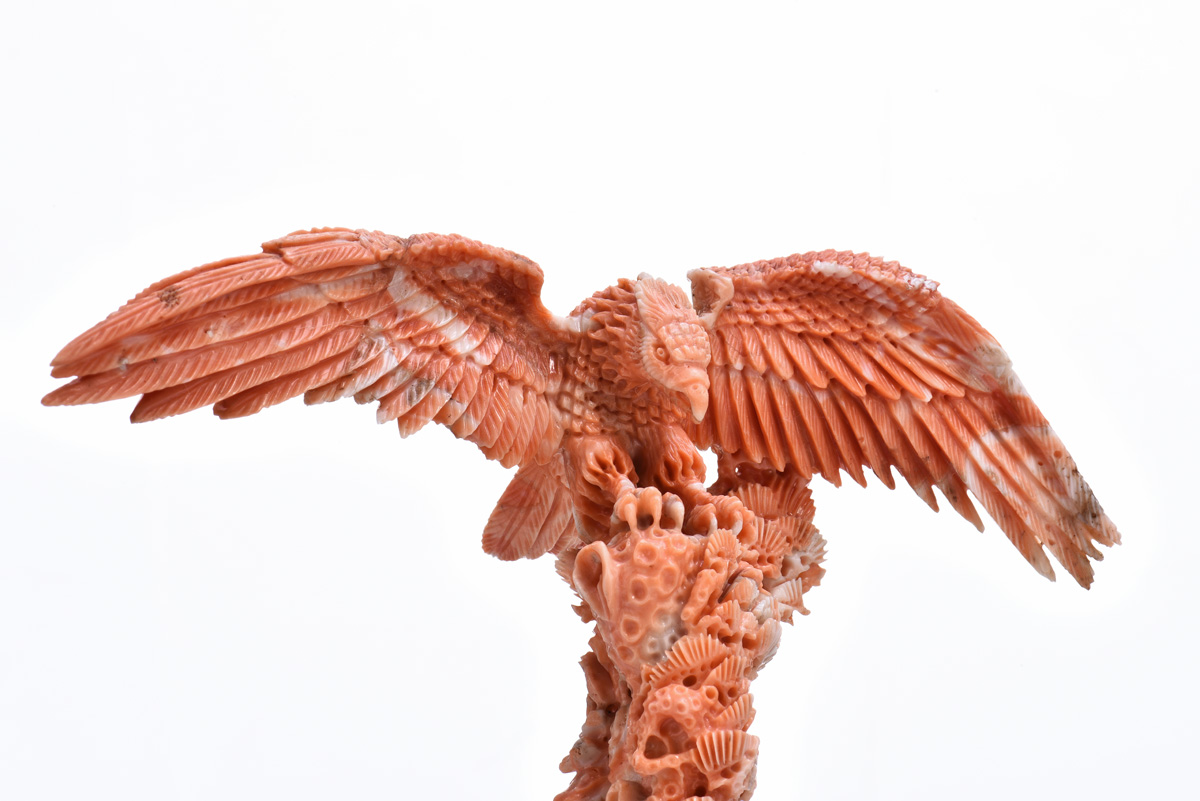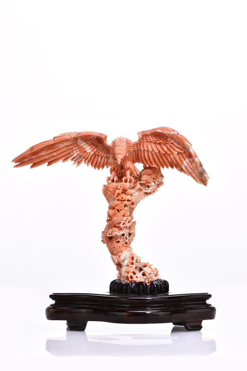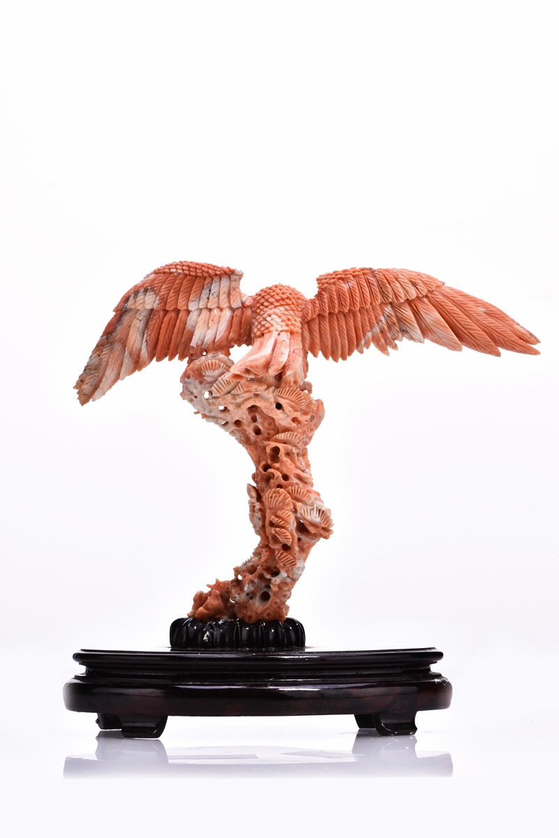天然珊瑚雕老鷹擺件 寓意英姿煥發 展翅高飛