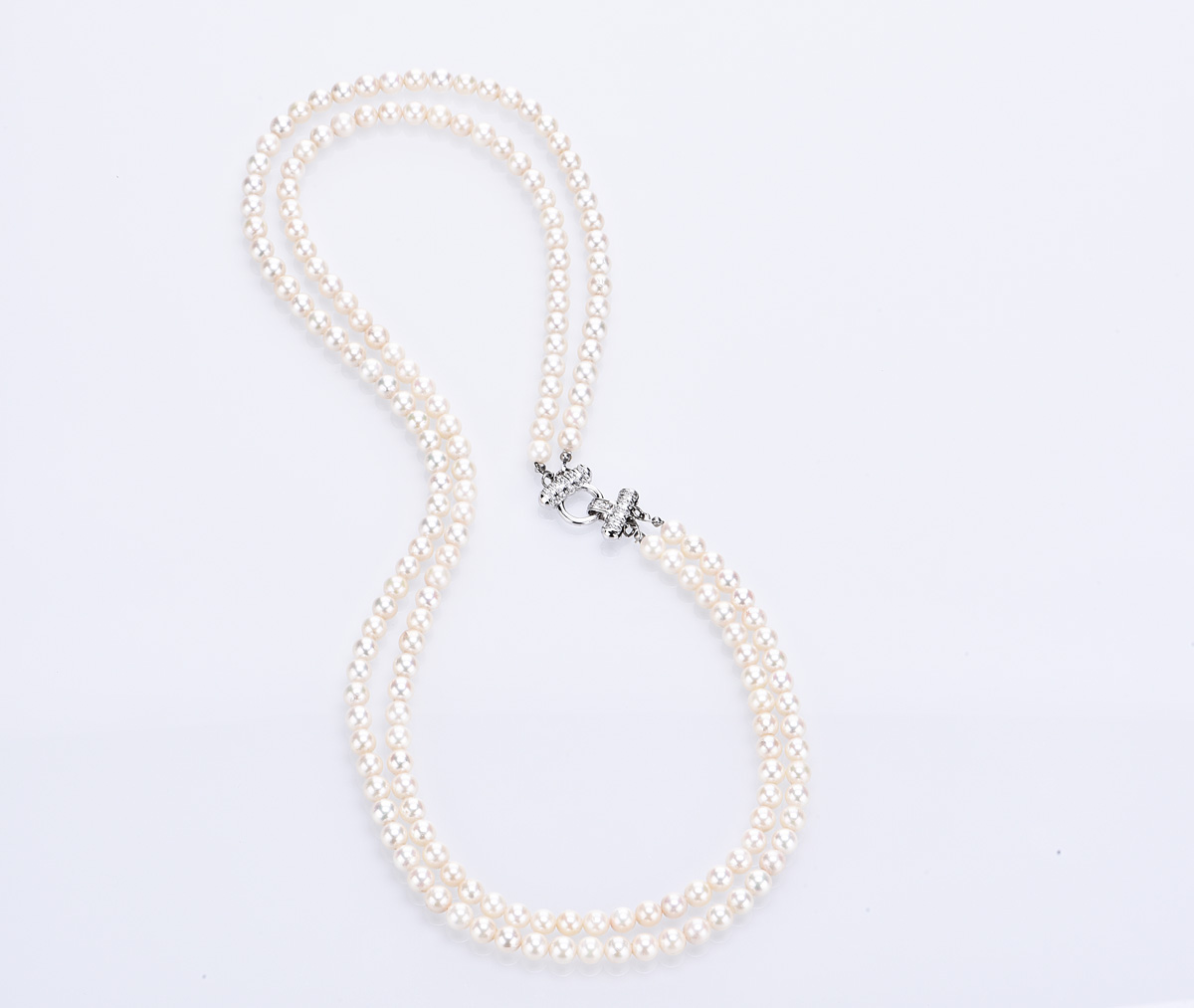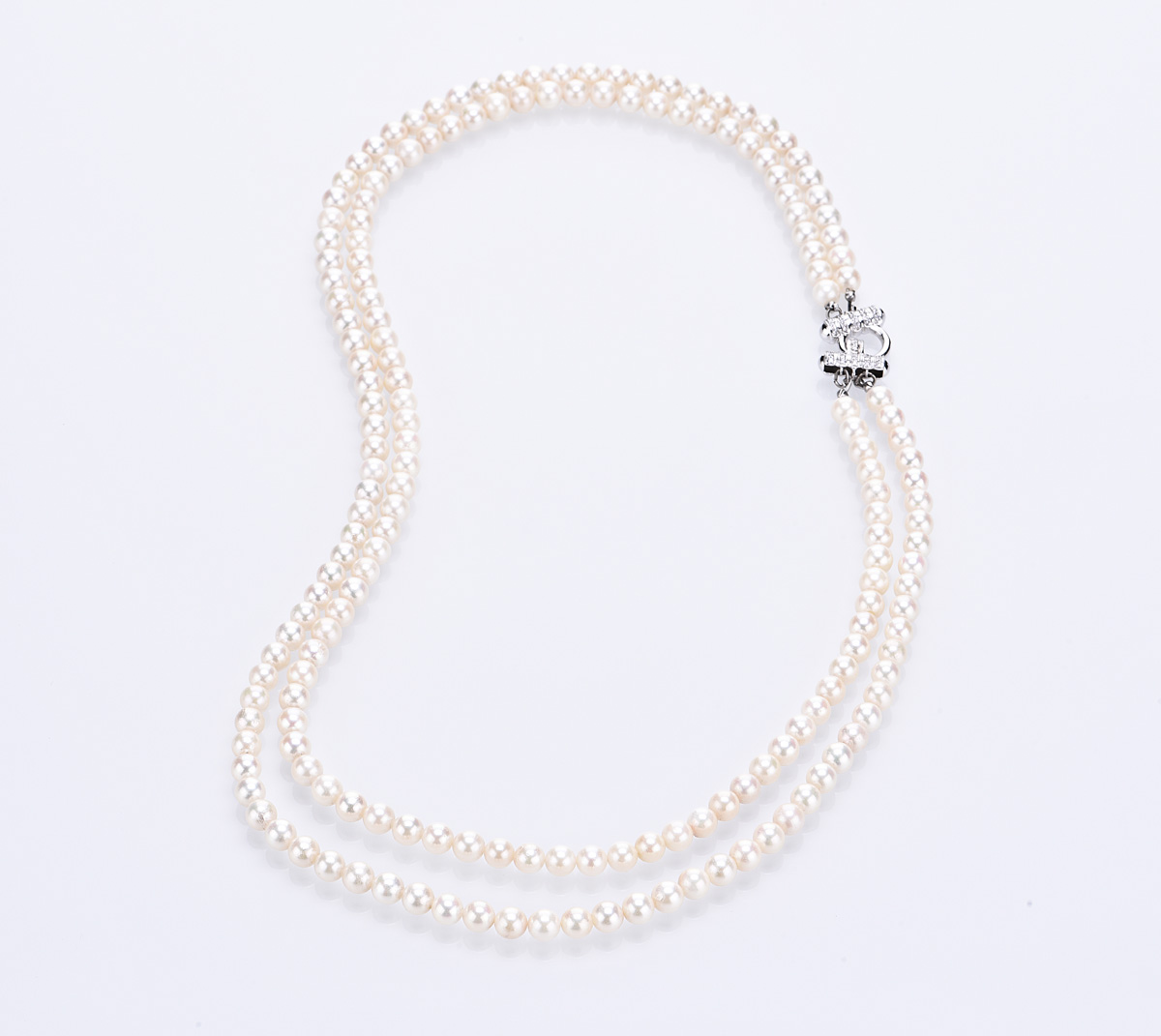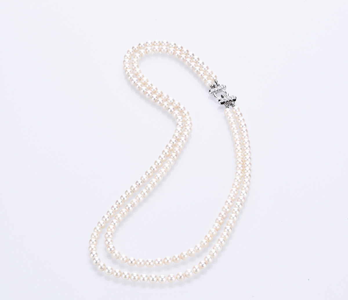 Composed of 182 cultured pearls measuring approximately 6.42 mm, completed by diamond safety chain, length approximately 60.2cm