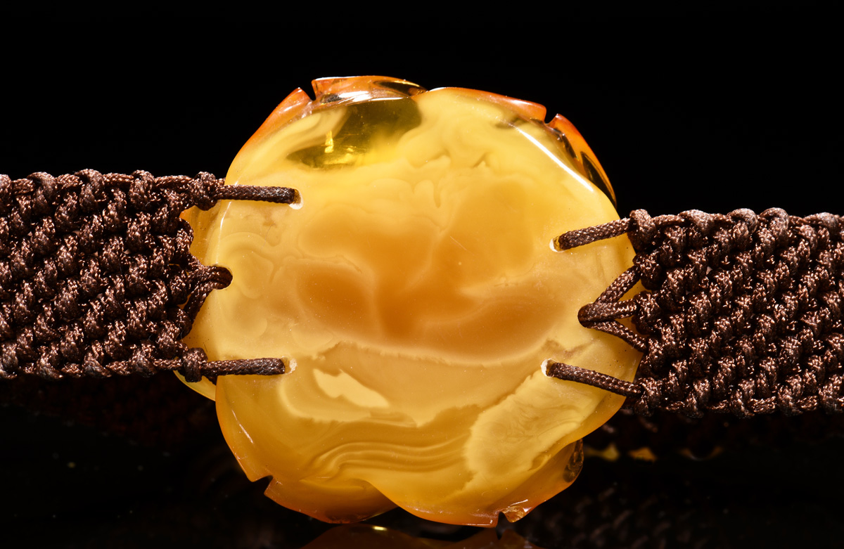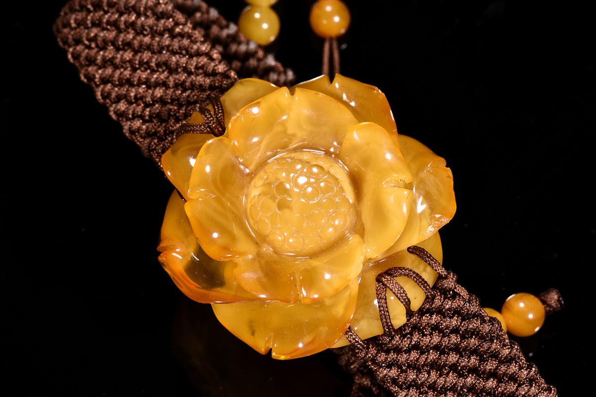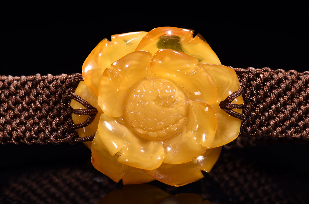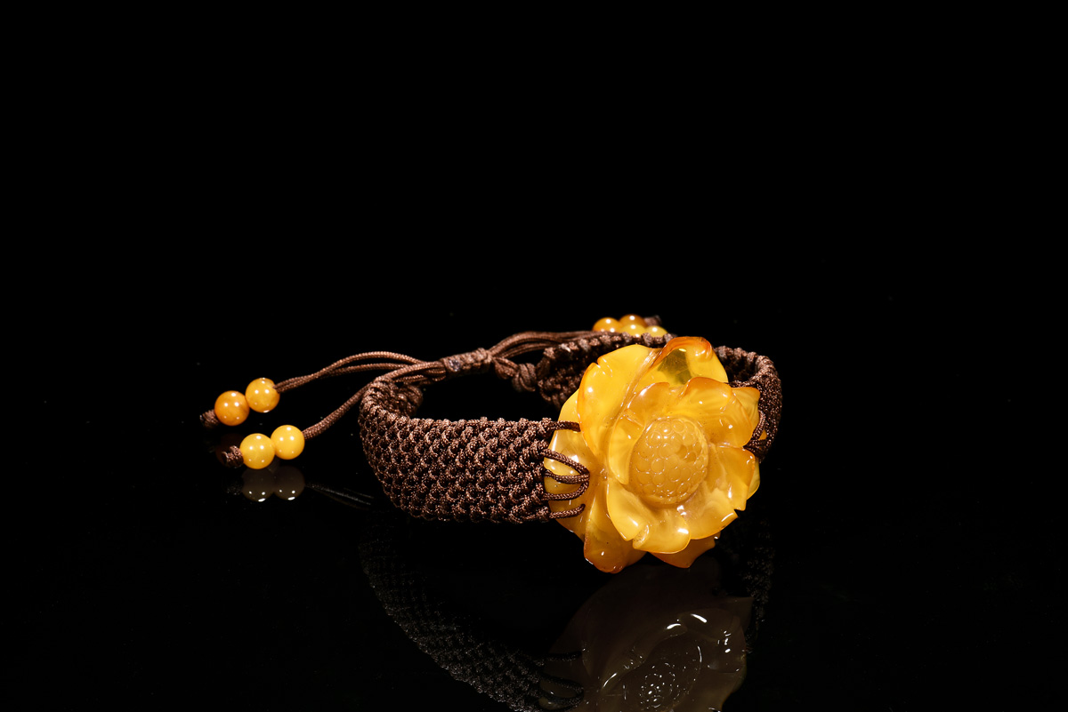 Amber bracelet carved as flower, amber approximately 35.82 x 33.28x 12.78 mm.