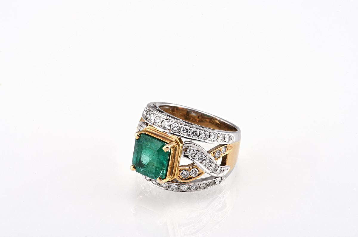 4.08 CARATS EMERALD AND DIAMOND RING WITH CERTIFICATE
