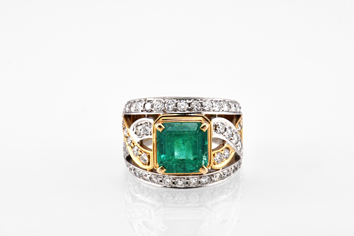 4.08 克拉祖母綠配鑽石戒指附證書